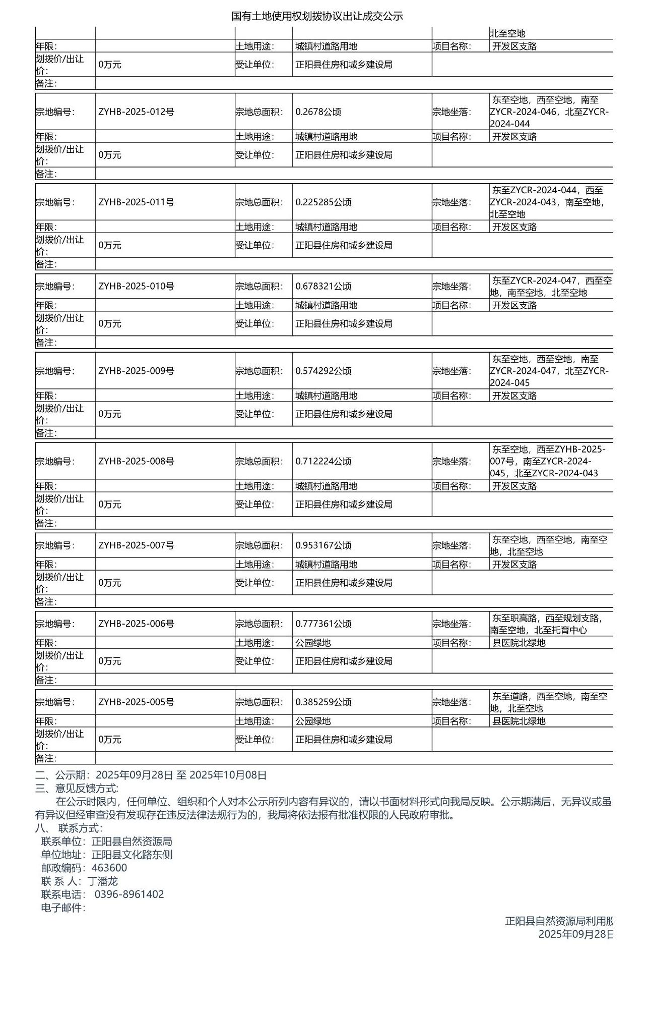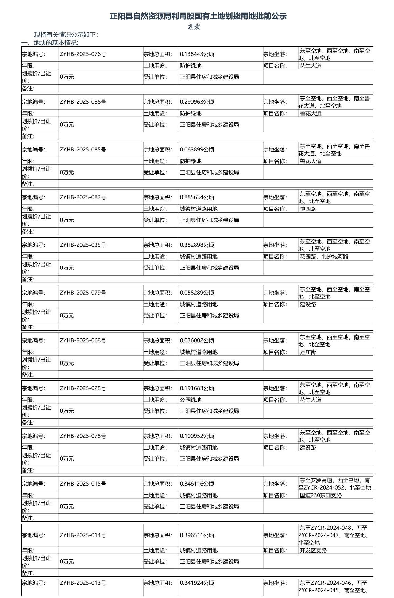 正阳县自然资源局利用股国有土地划拨用地批前公示