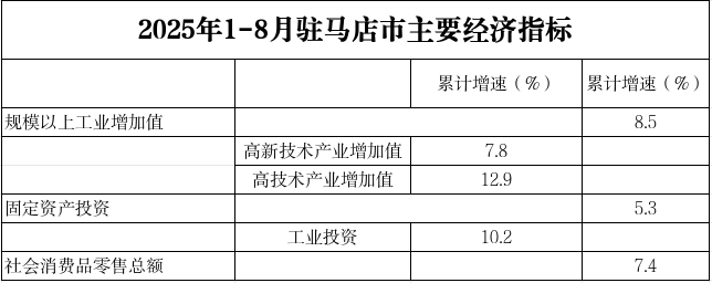 1-8月,全市规模以上工业增加值同比增长8.5%。其中,全市高新技术产业增加值、高技术产业增加值分别增长7.8%、12.9%。