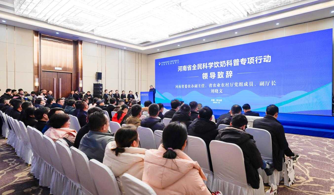 12月19日,河南省全民科学饮奶科普专项行动启动仪式在驻马店国际会展中心举行。省委农办副主任,省农业农村厅党组成员、副厅长刘晓文讲话。驻马店市政府副市长何冬、河南省奶业协会会长唐洪峰致辞。会议由省农业农村厅奶业管理处处长雷蕾、省奶业协会秘书长陈华杰主持。